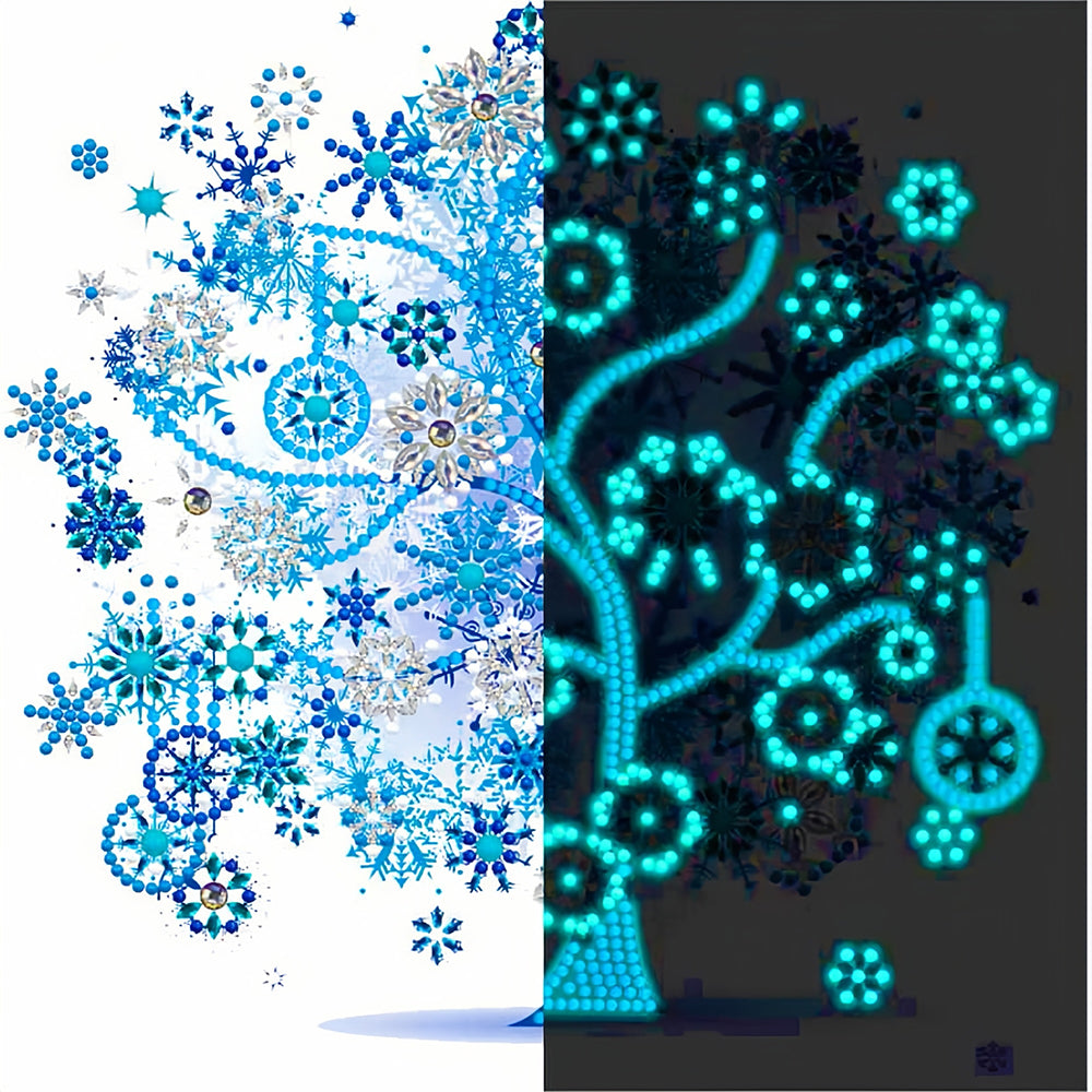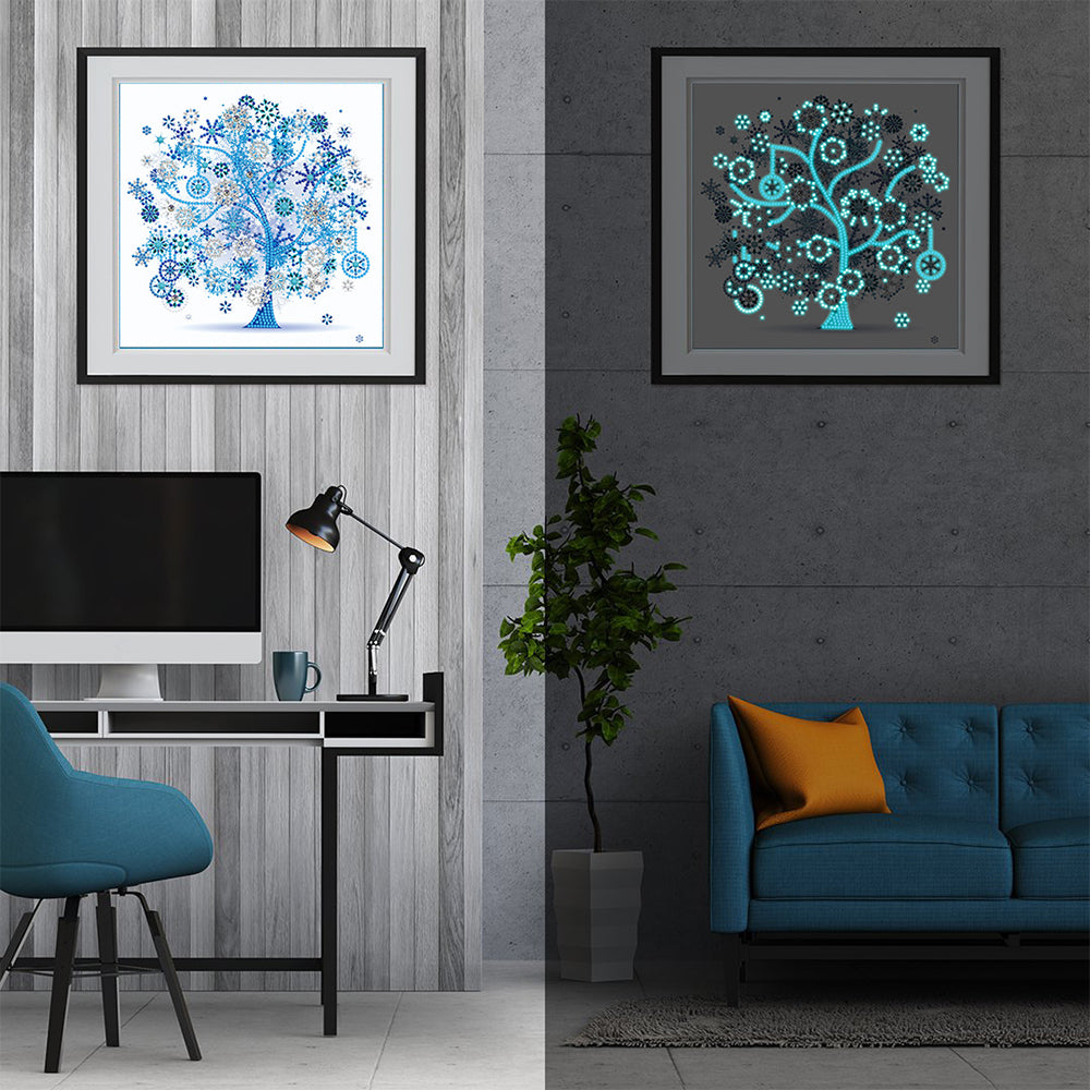 Winter Blue Tree Luminous Special Shaped Diamond Painting