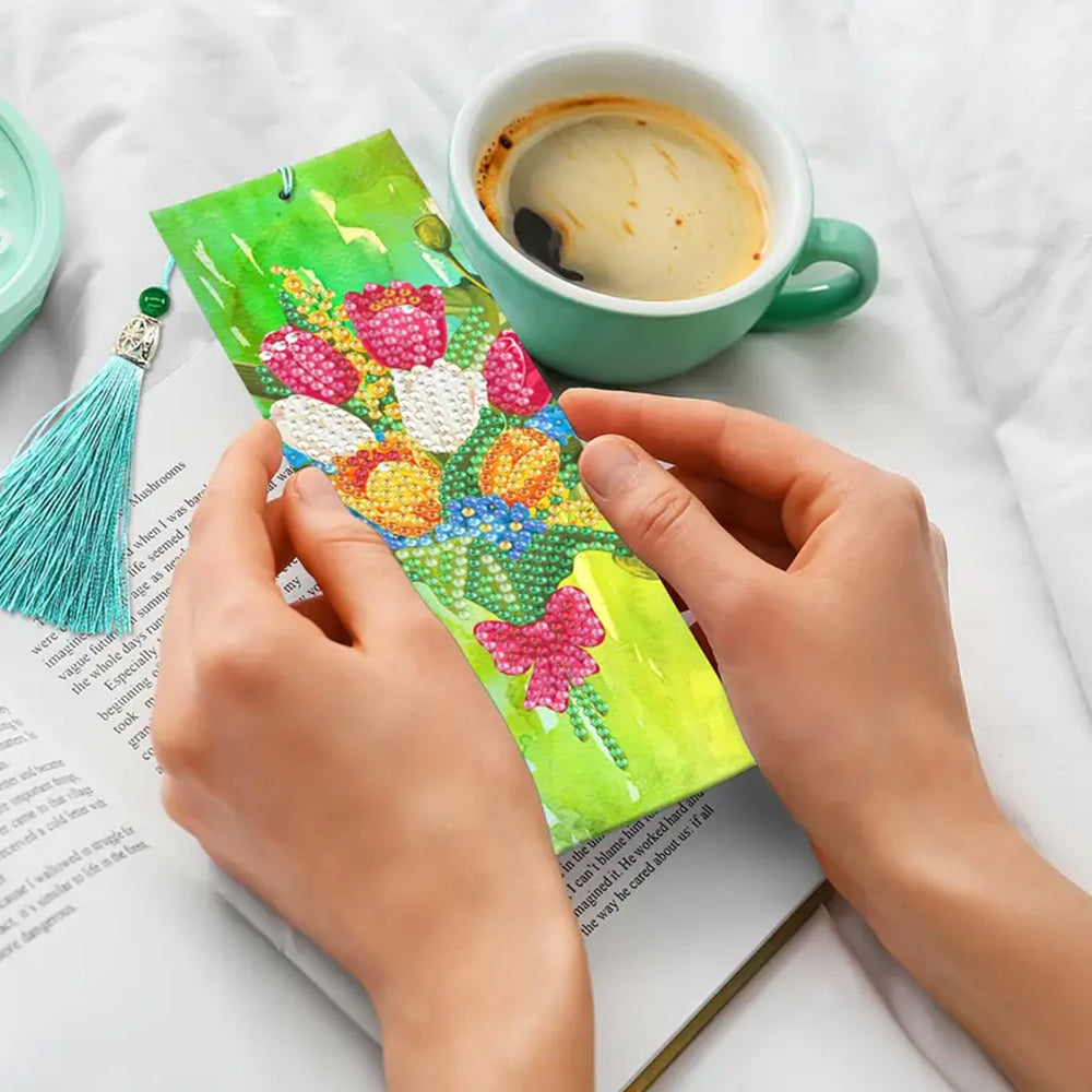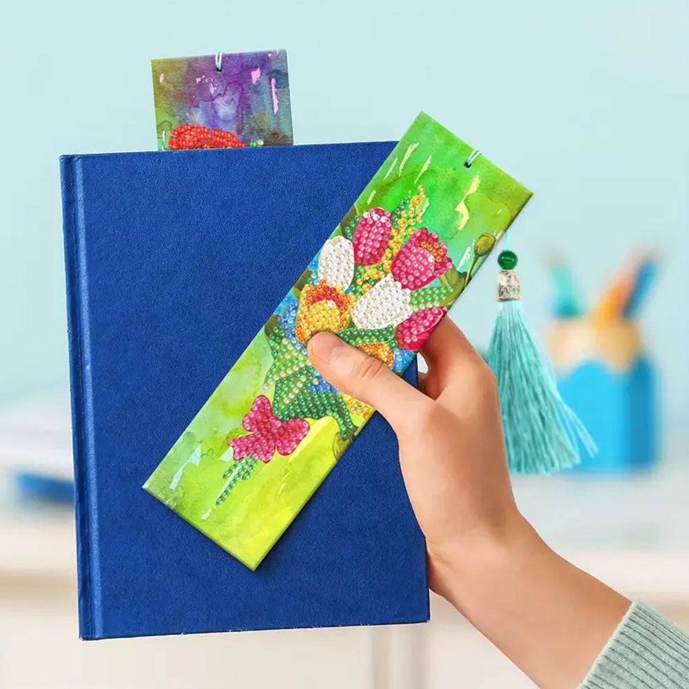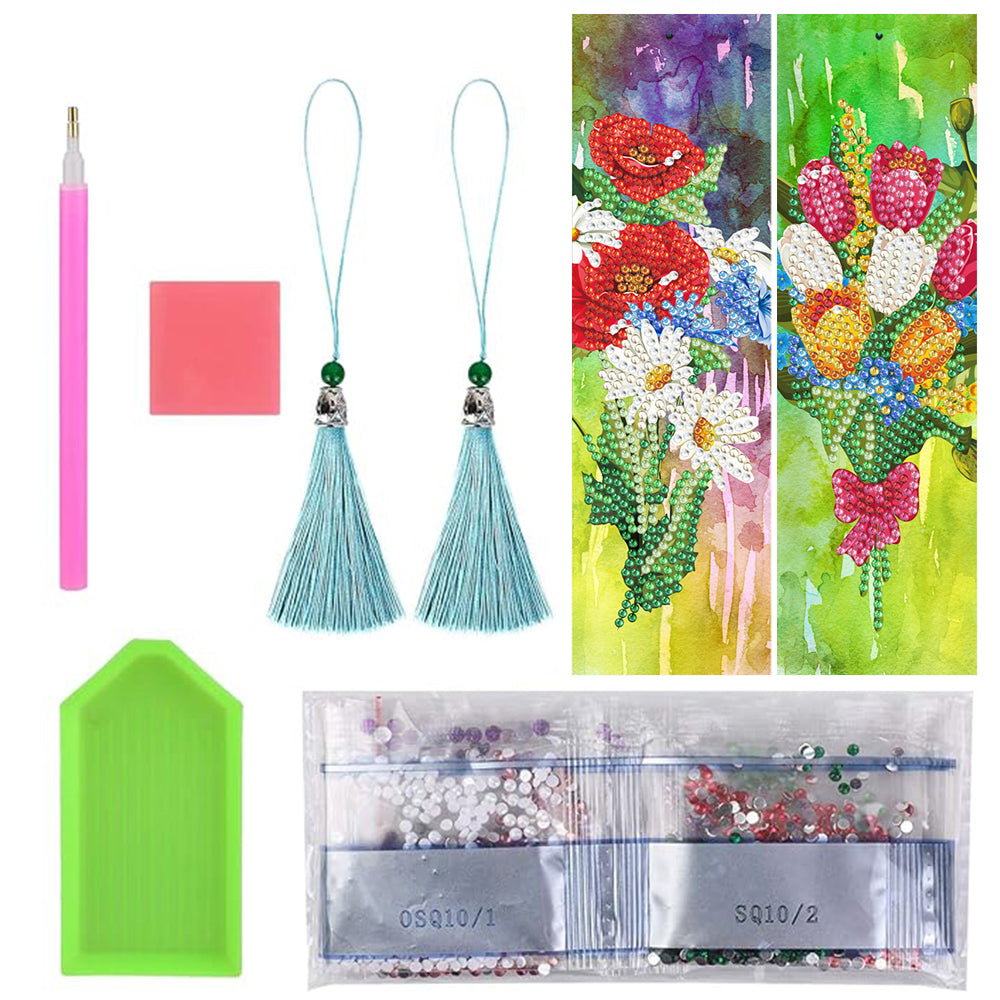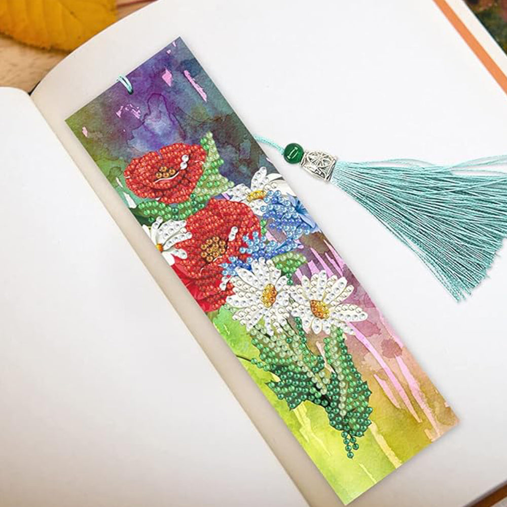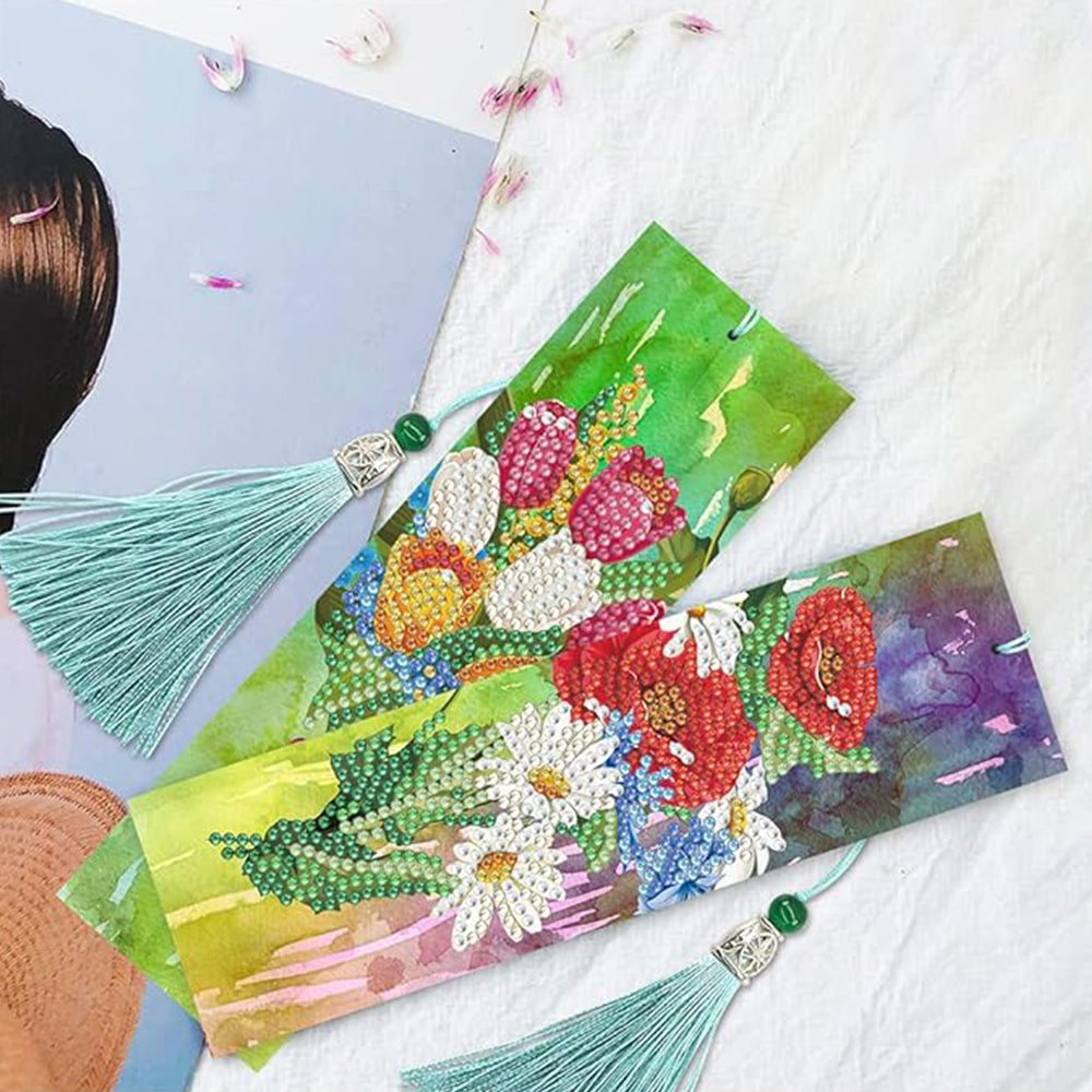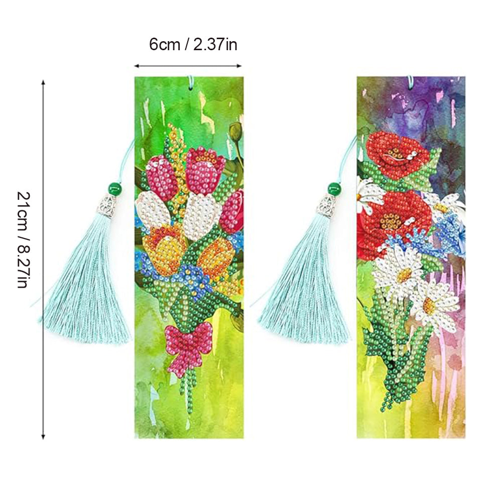 2Pcs Tulip Poppy and Daisy Leather Bookmark Diamond Painting Kits