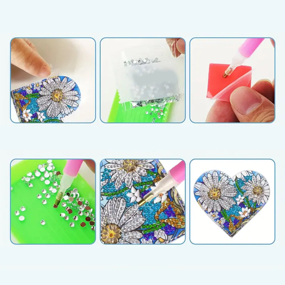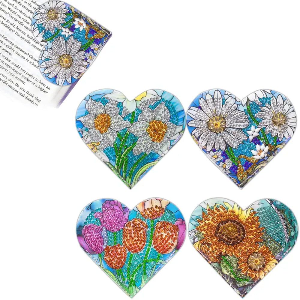 4Pcs Heart Shaped Flower PU Corner Cover Bookmark Diamond Painting Kits