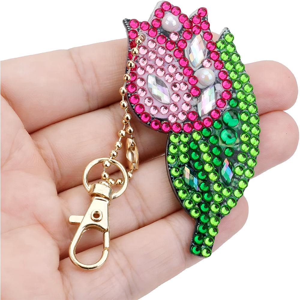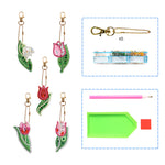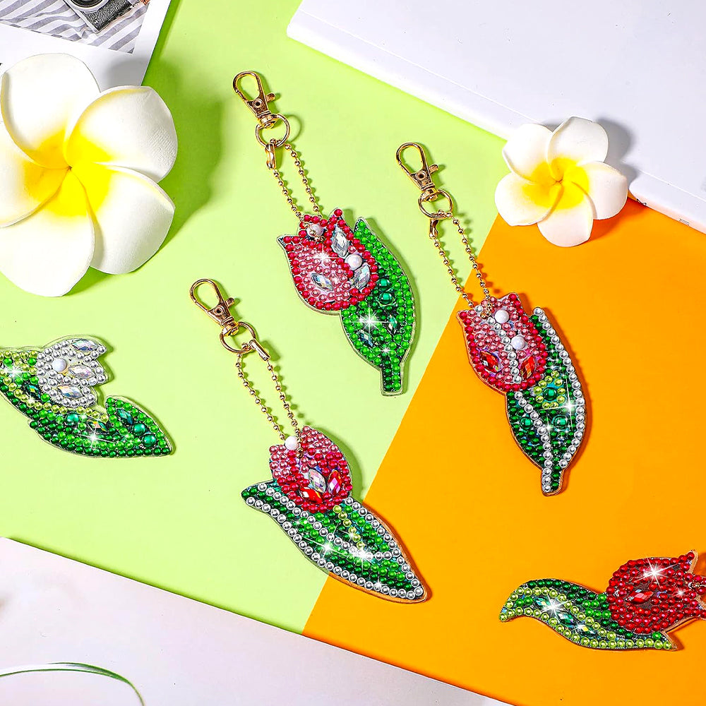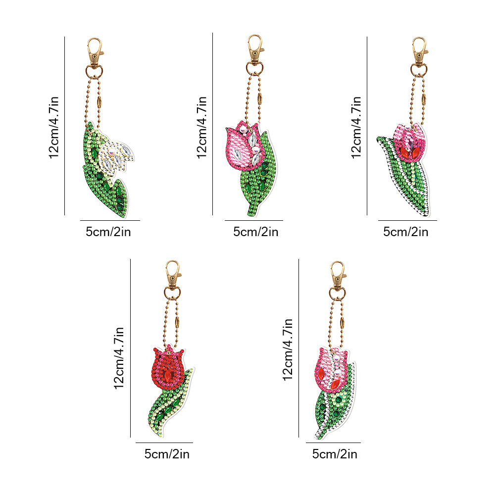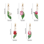 5Pcs Red Tulip Flower Acrylic Double Side Keychain Diamond Painting