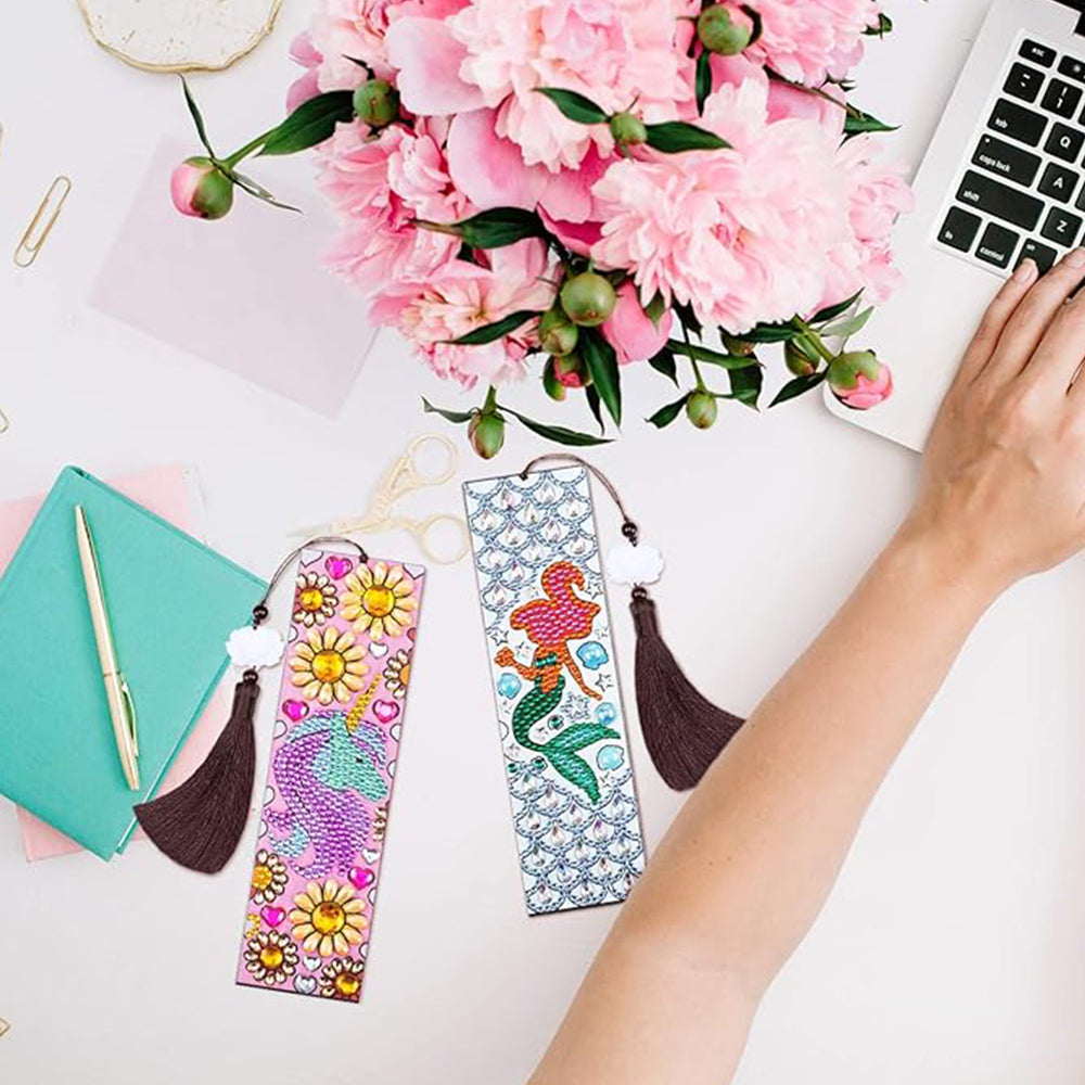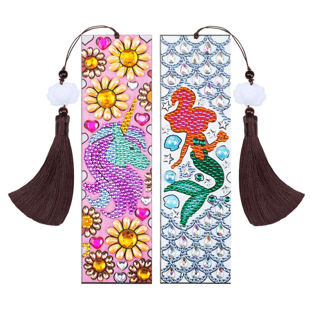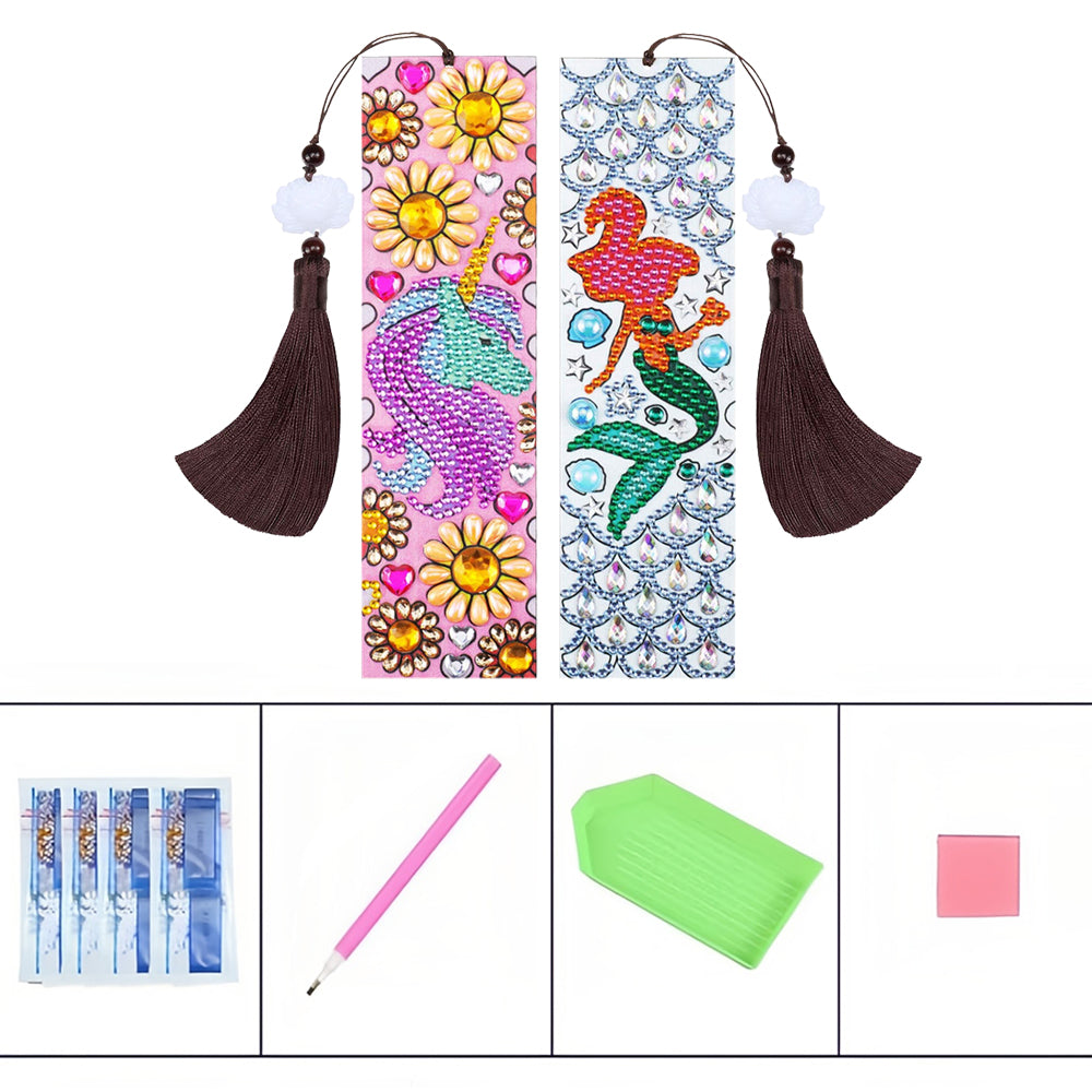 2Pcs Unicorn and Mermaid Leather Bookmark Diamond Painting Kits