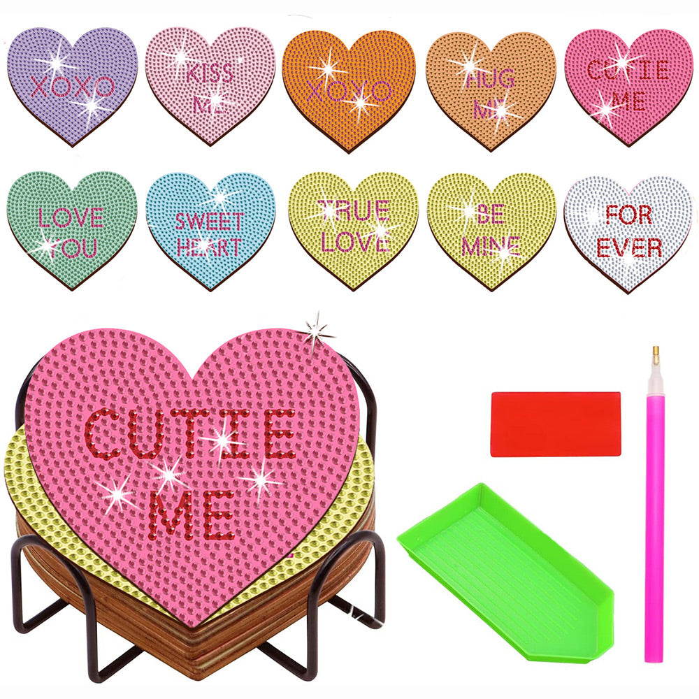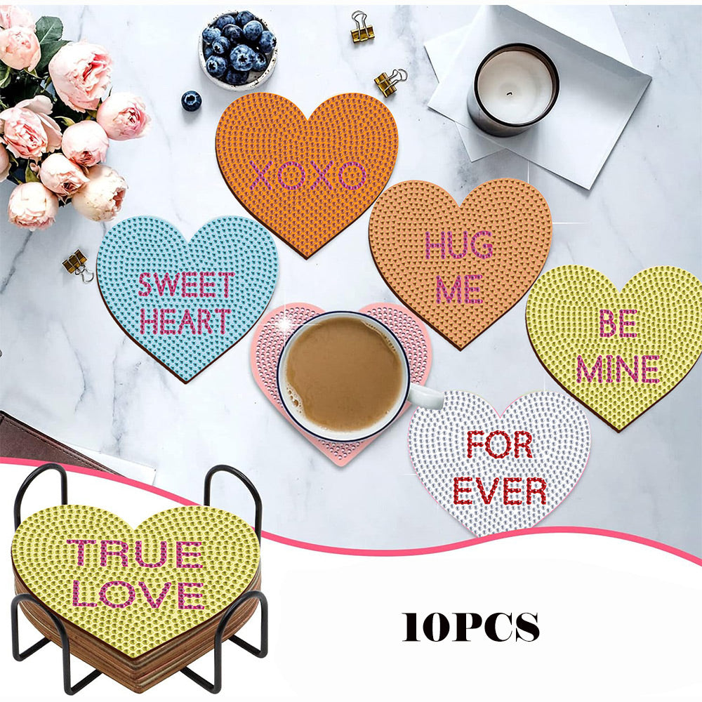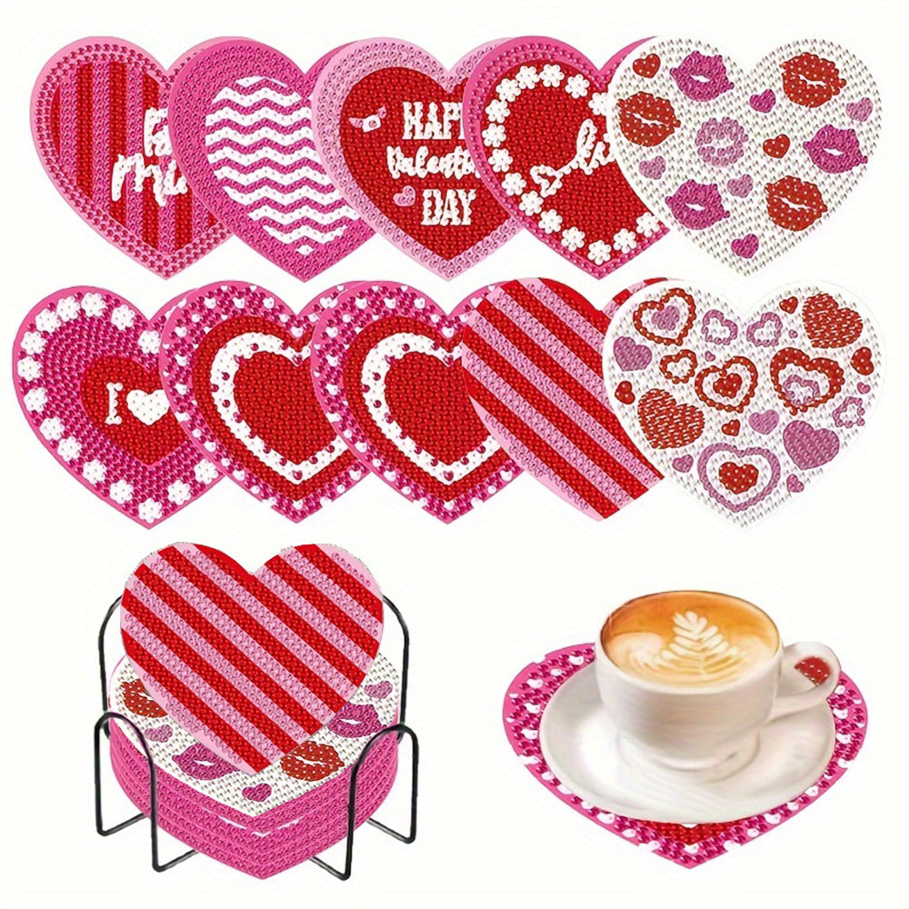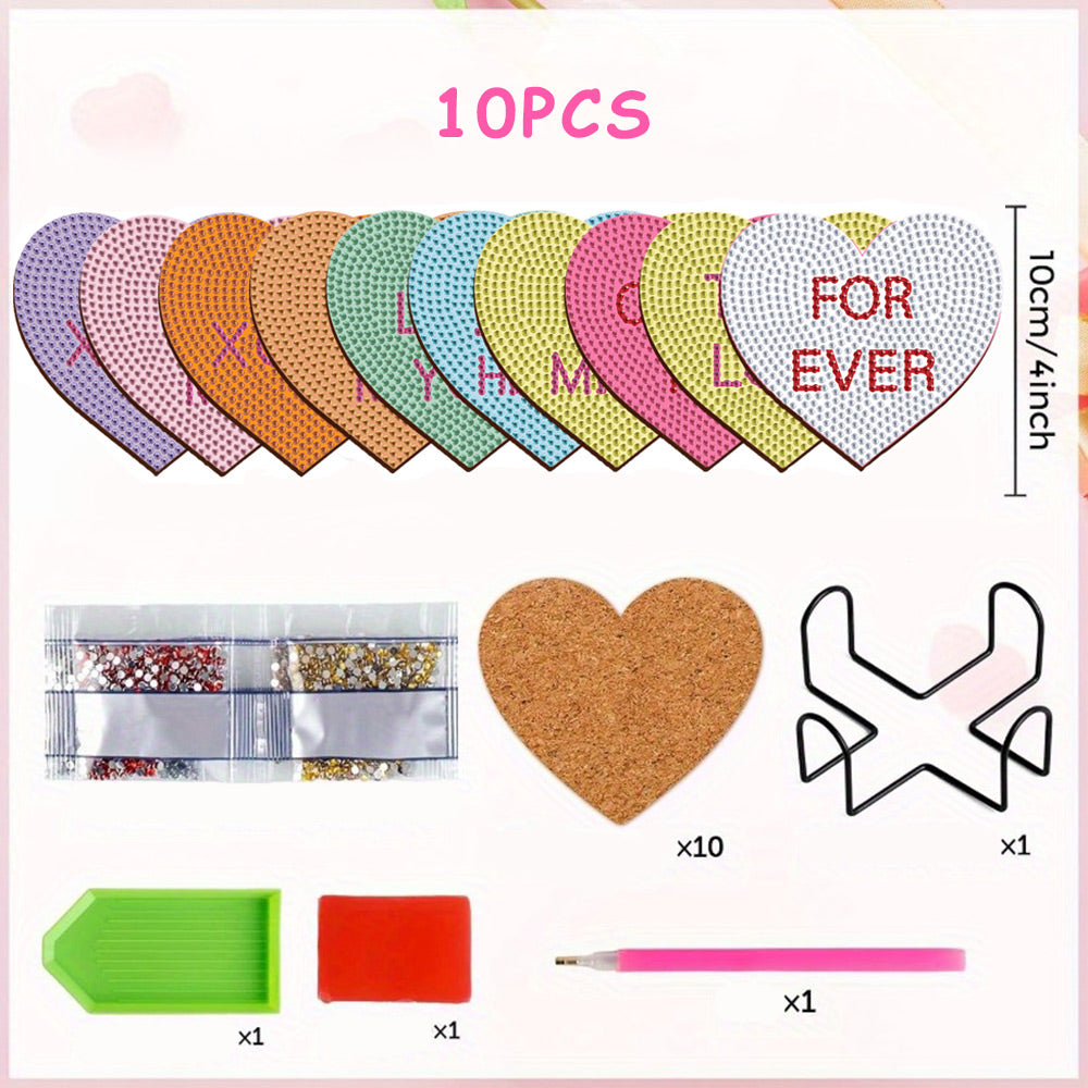 Heart Shaped Diamond Painting Coasters 10Pcs