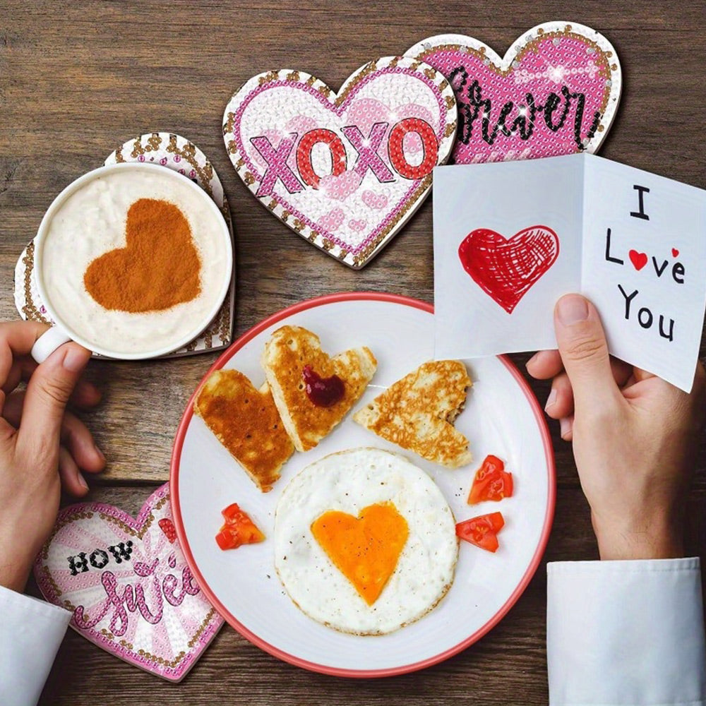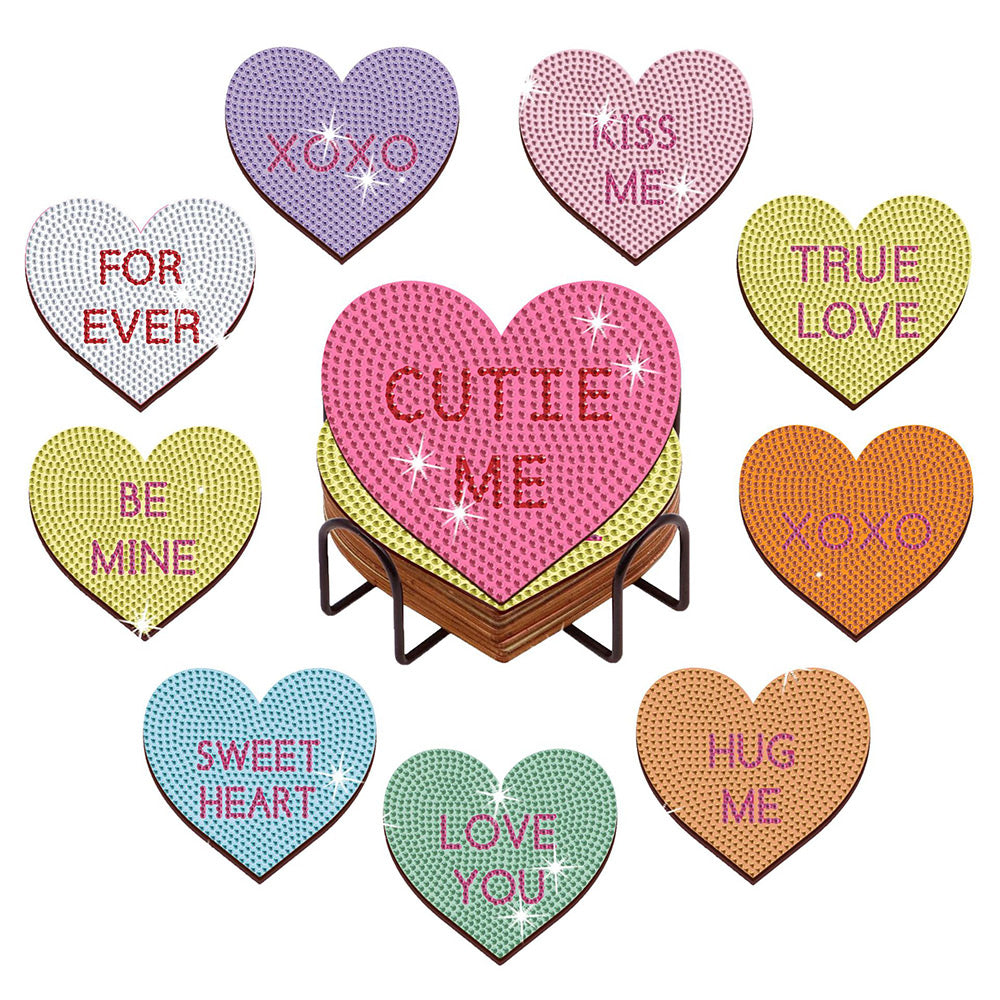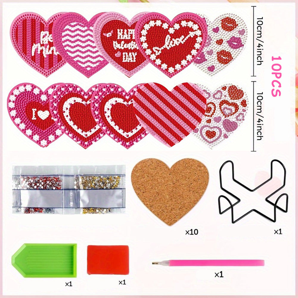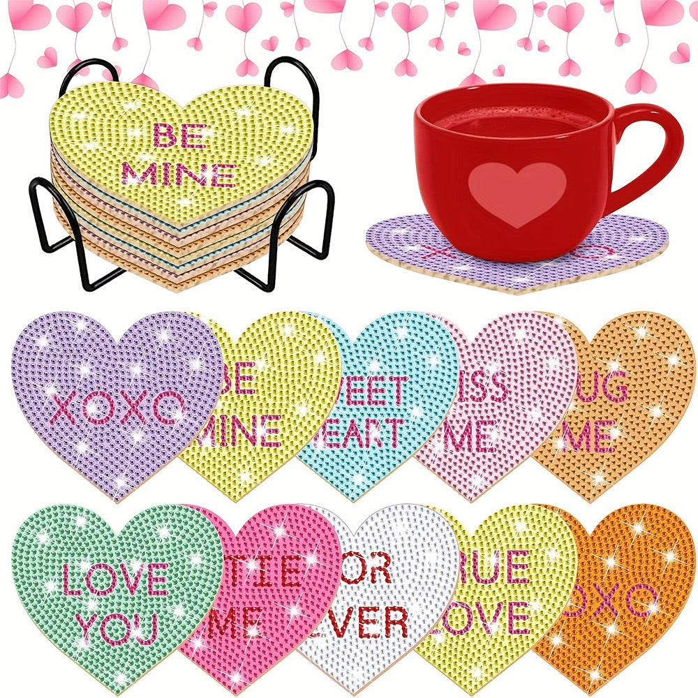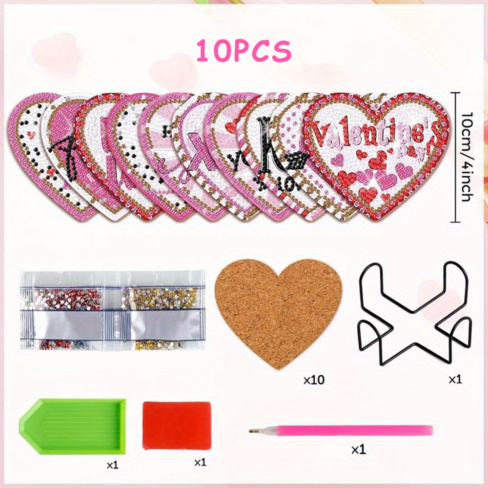 Heart Shaped Diamond Painting Coasters 10Pcs
