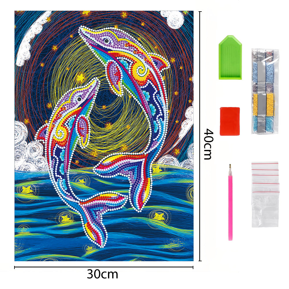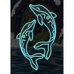 Two Dolphins at Night Luminous Special Shaped Diamond Painting