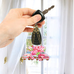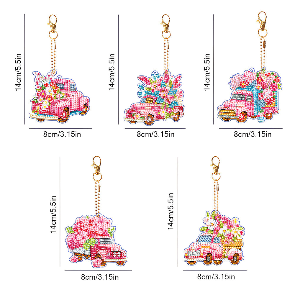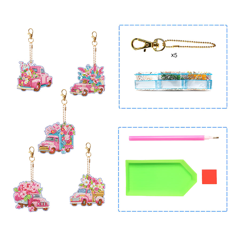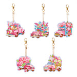 5Pcs Pink Flower Car Acrylic Double Side Keychain Diamond Painting