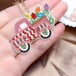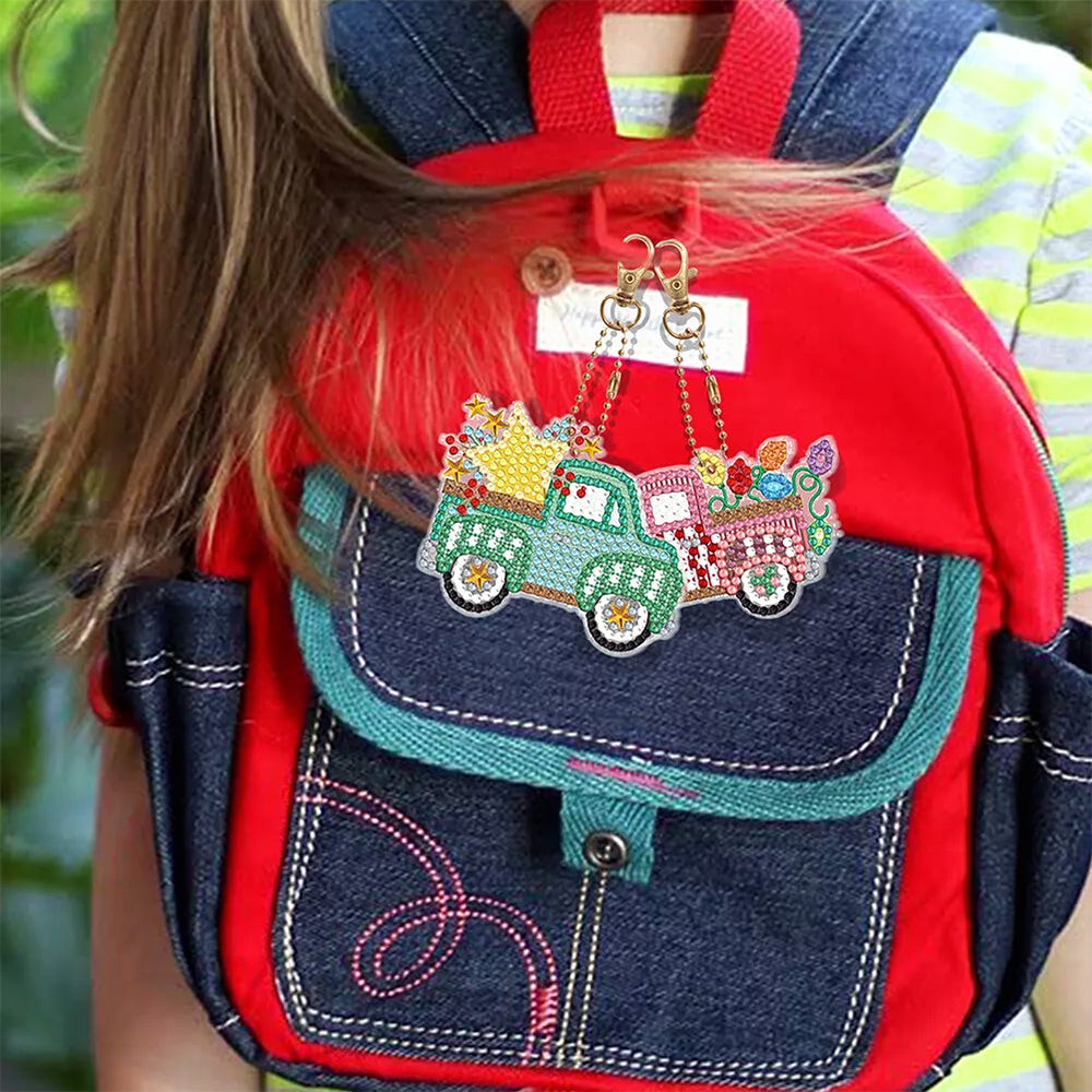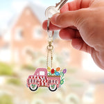 6Pcs Christmas Car Acrylic Double Side Keychain Diamond Painting