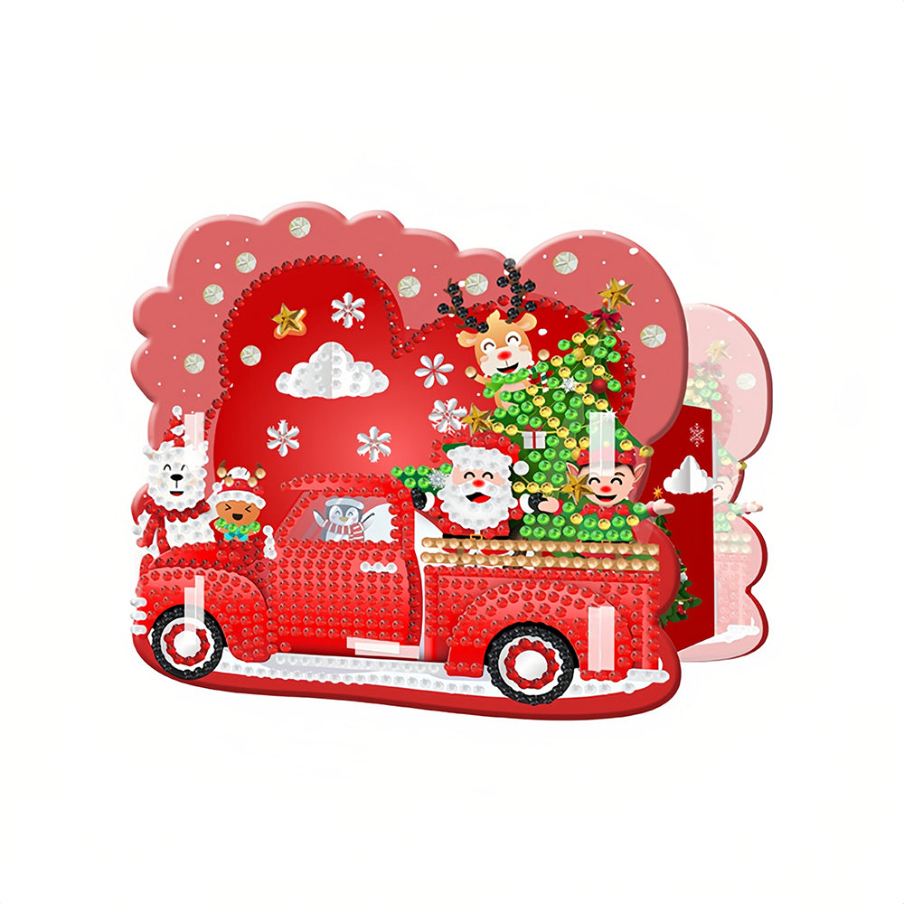Red Christmas Car Diamond Painting Pen Holder