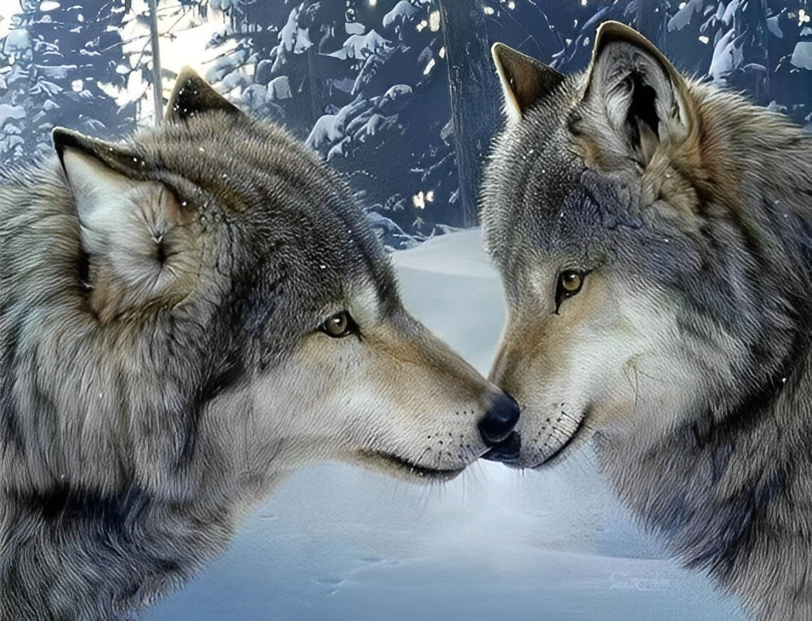 Two Gray Wolves Touching Their Nose Diamond Painting