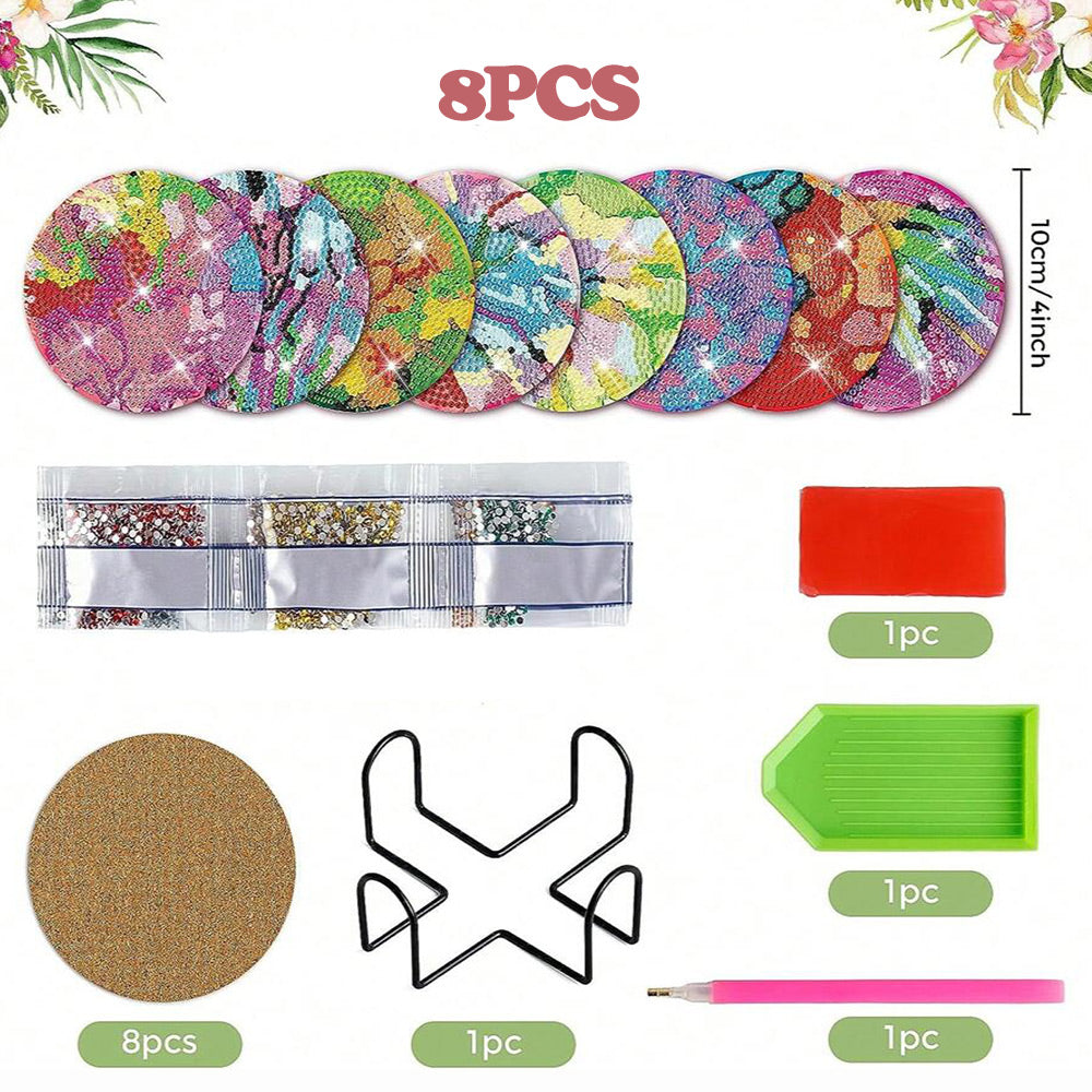 Abstract Flower Diamond Painting Coasters 8Pcs