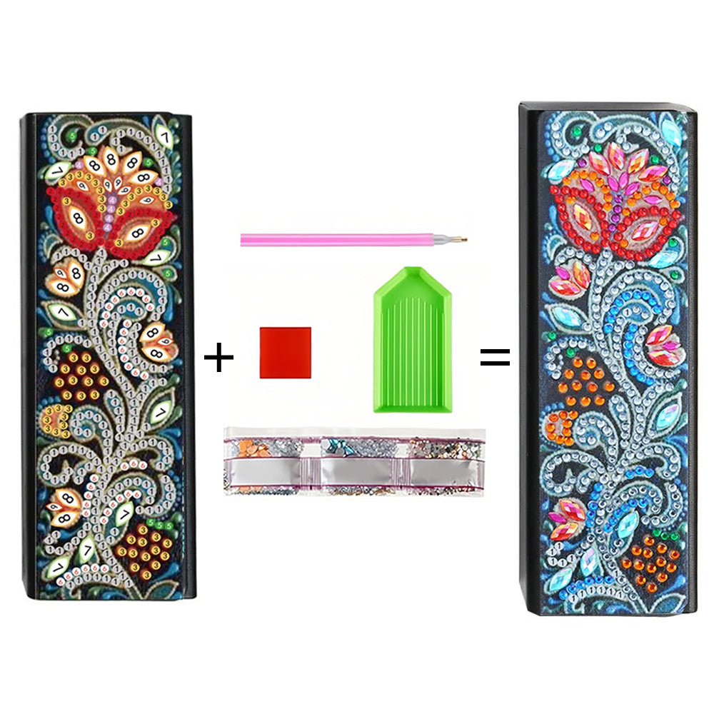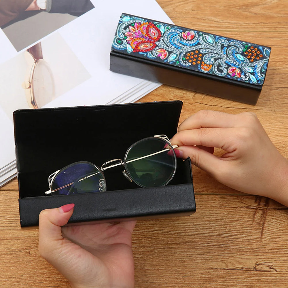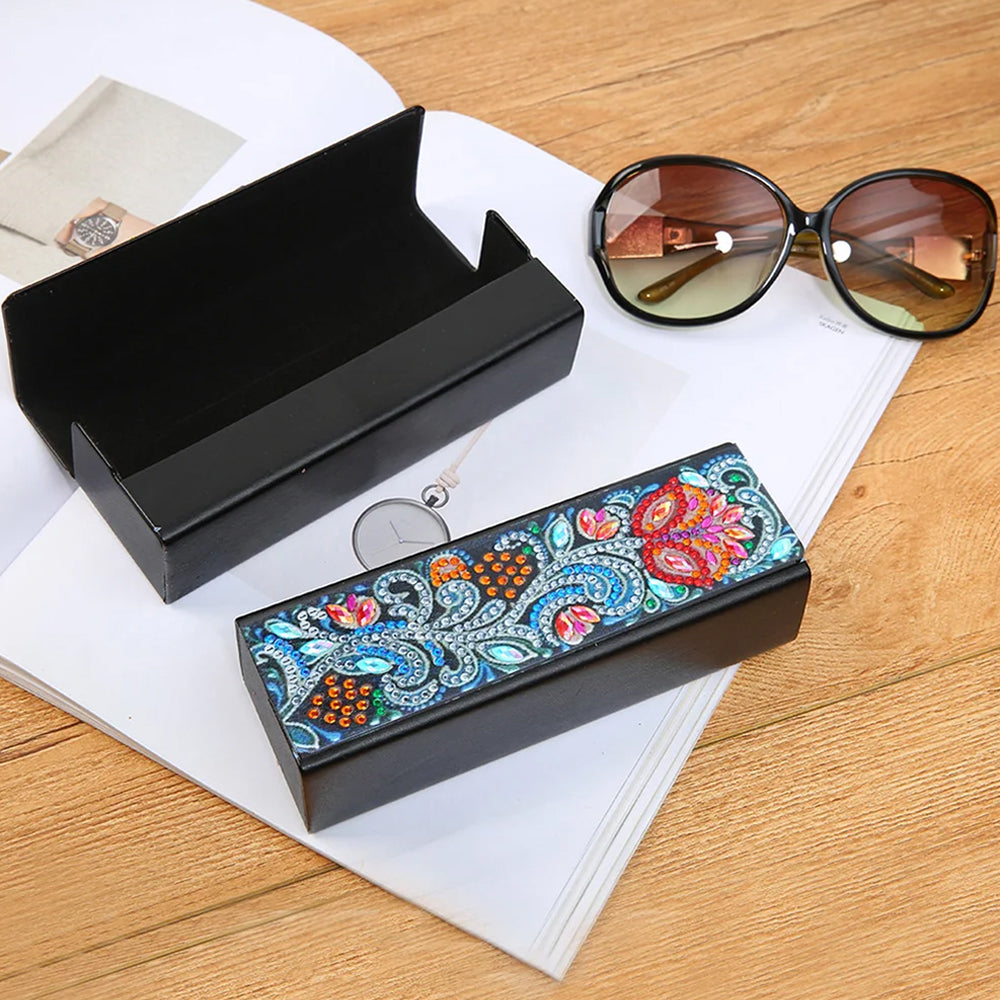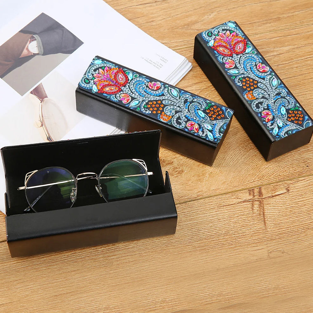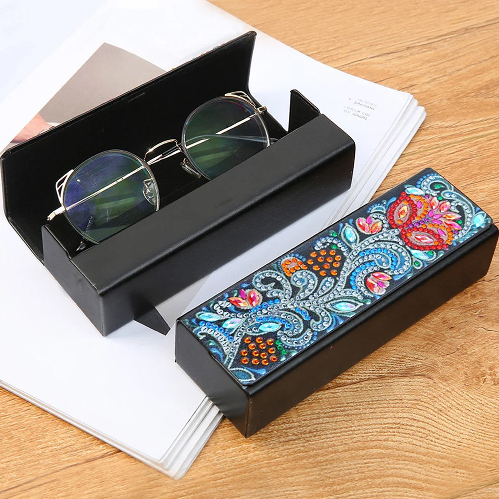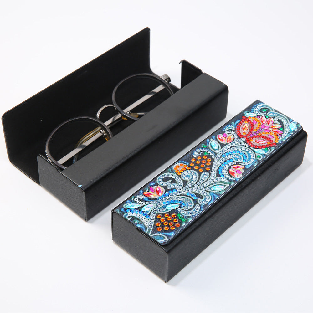 Abstract Red Flower Leather Glasses Storage Case Diamond Painting Kits STOBOX332