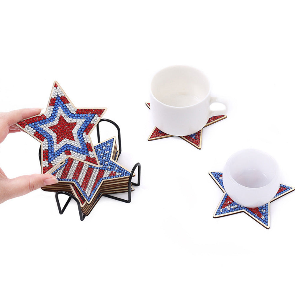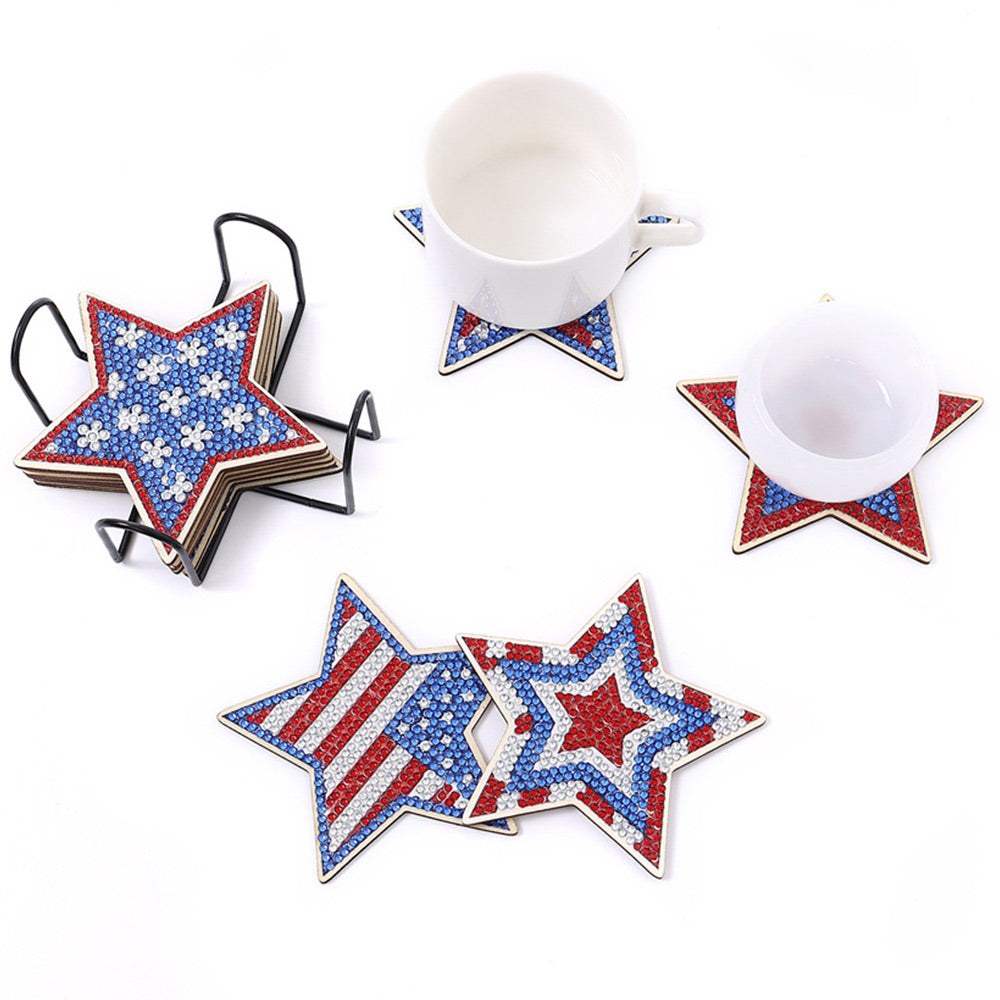 American Independence Day Stars Diamond Painting Coasters 10Pcs