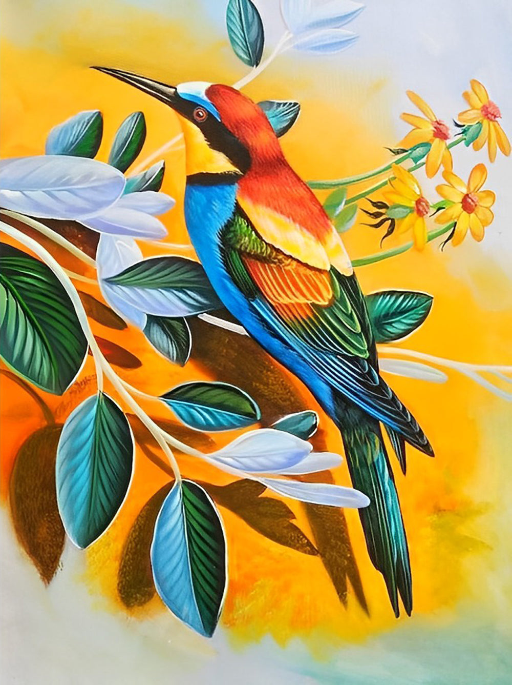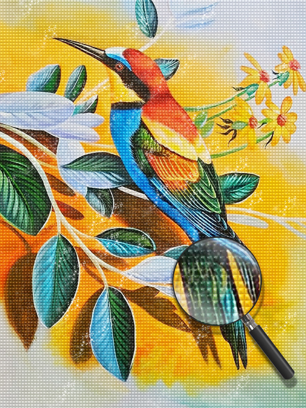 Multicolored Bird and Yellow Flowers Diamond Painting