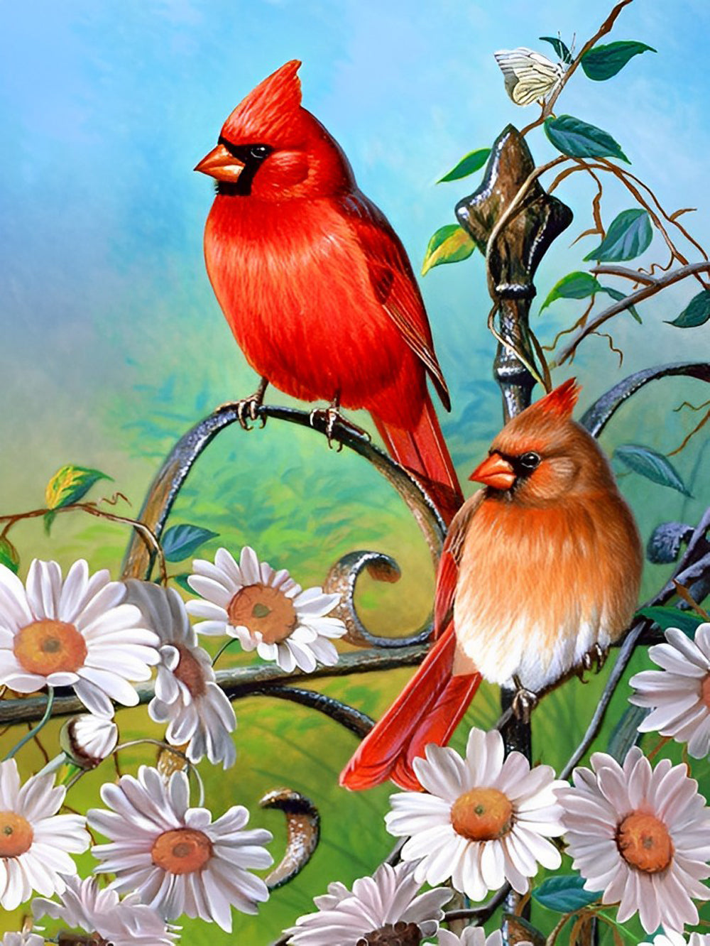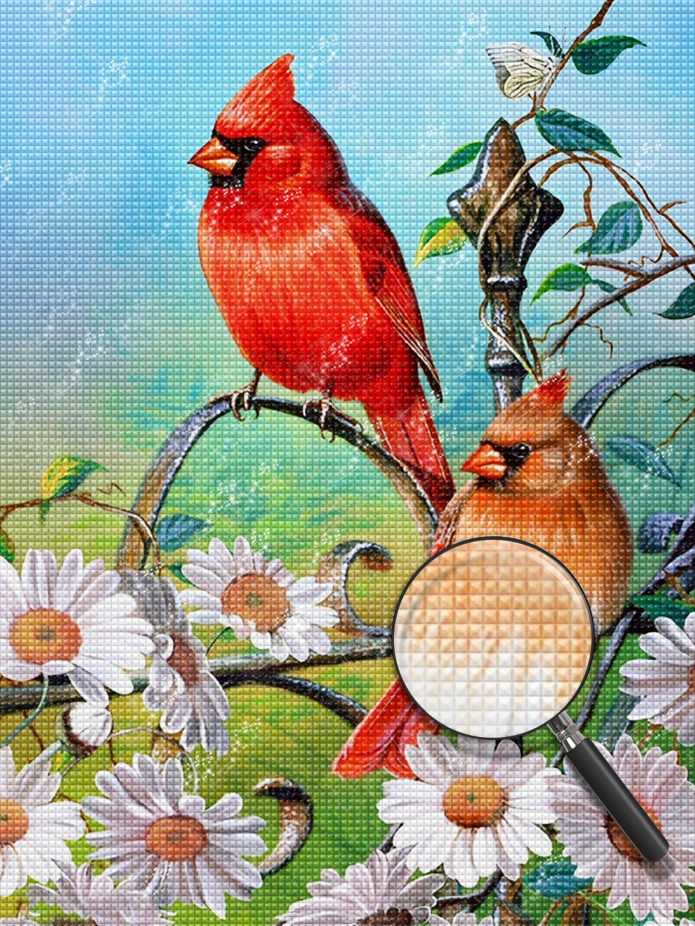 Cardinalidae and White Daisies Diamond Painting