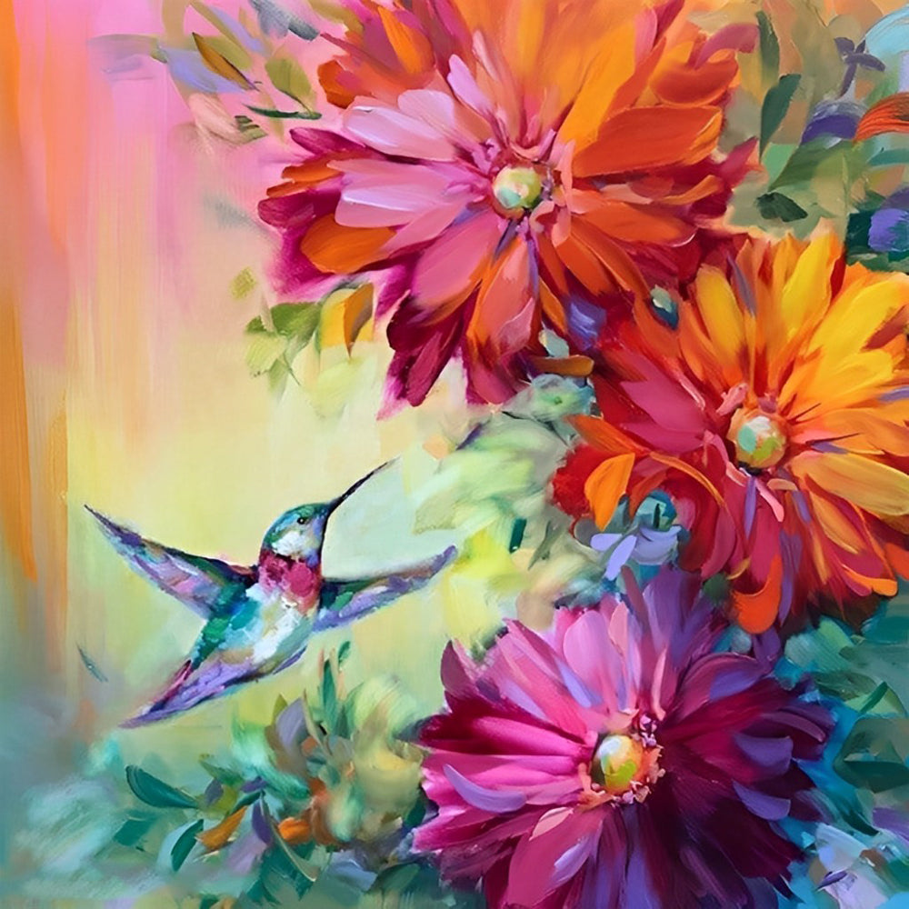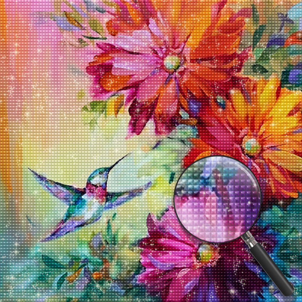 Hummingbirds and Red Daisies Diamond Painting