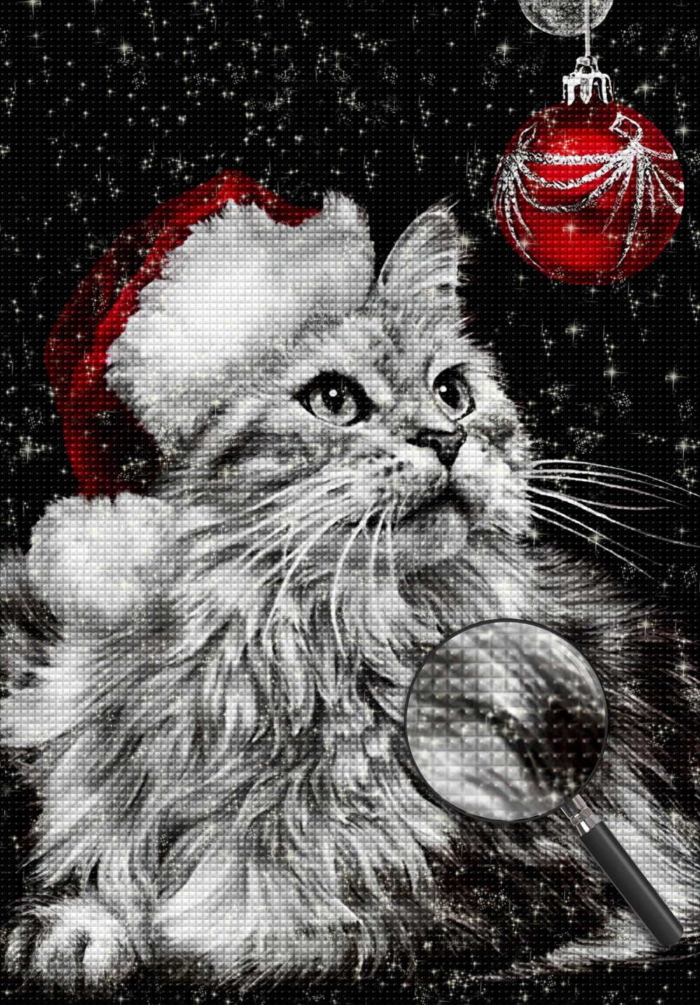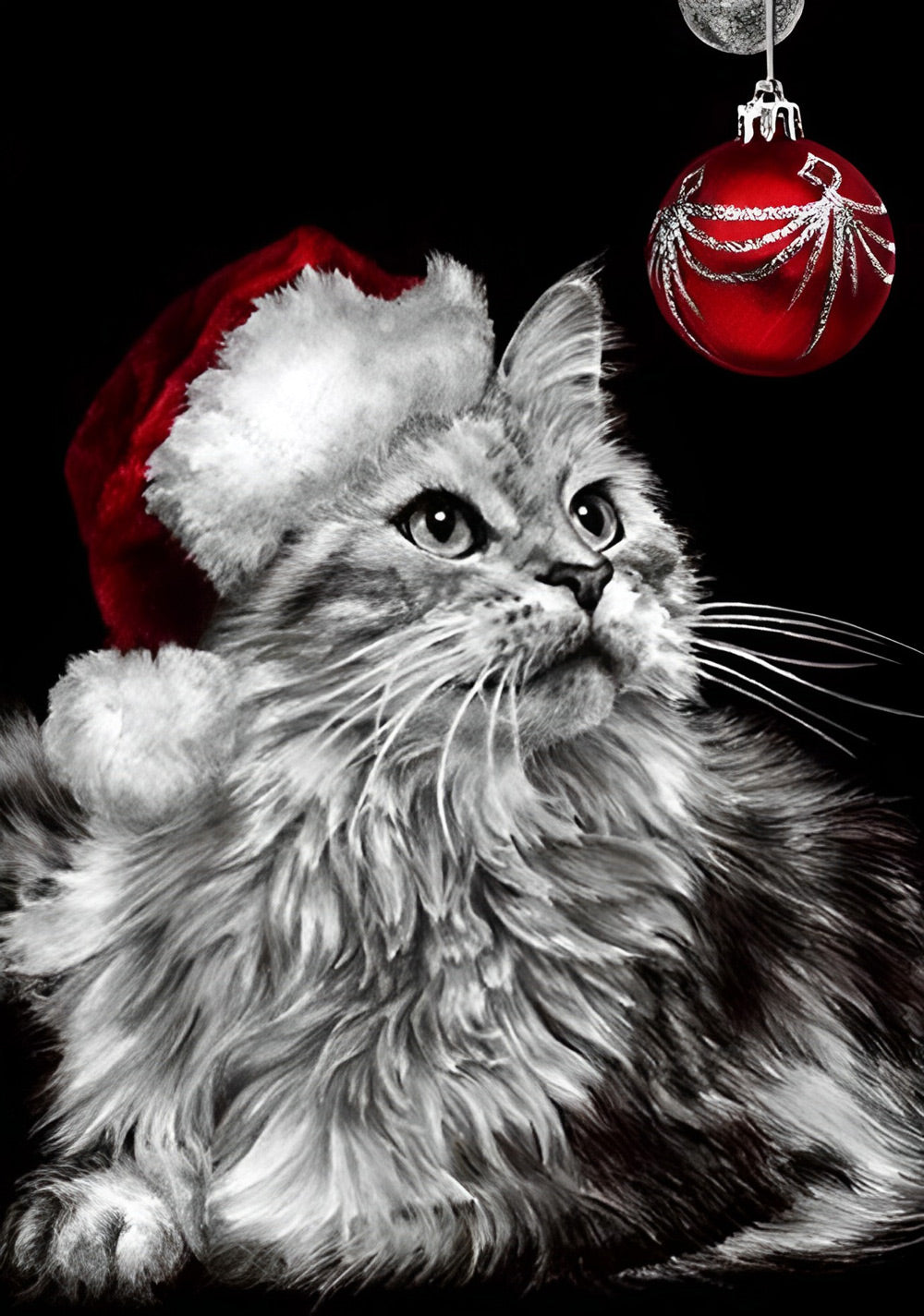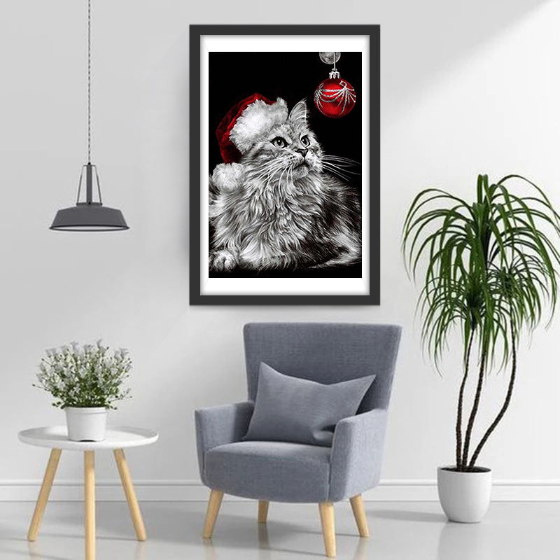 Maine Coon Cat and Red Christmas Ball Diamond Painting