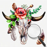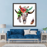 Skeleton Cow with Red Rose Diamond Painting