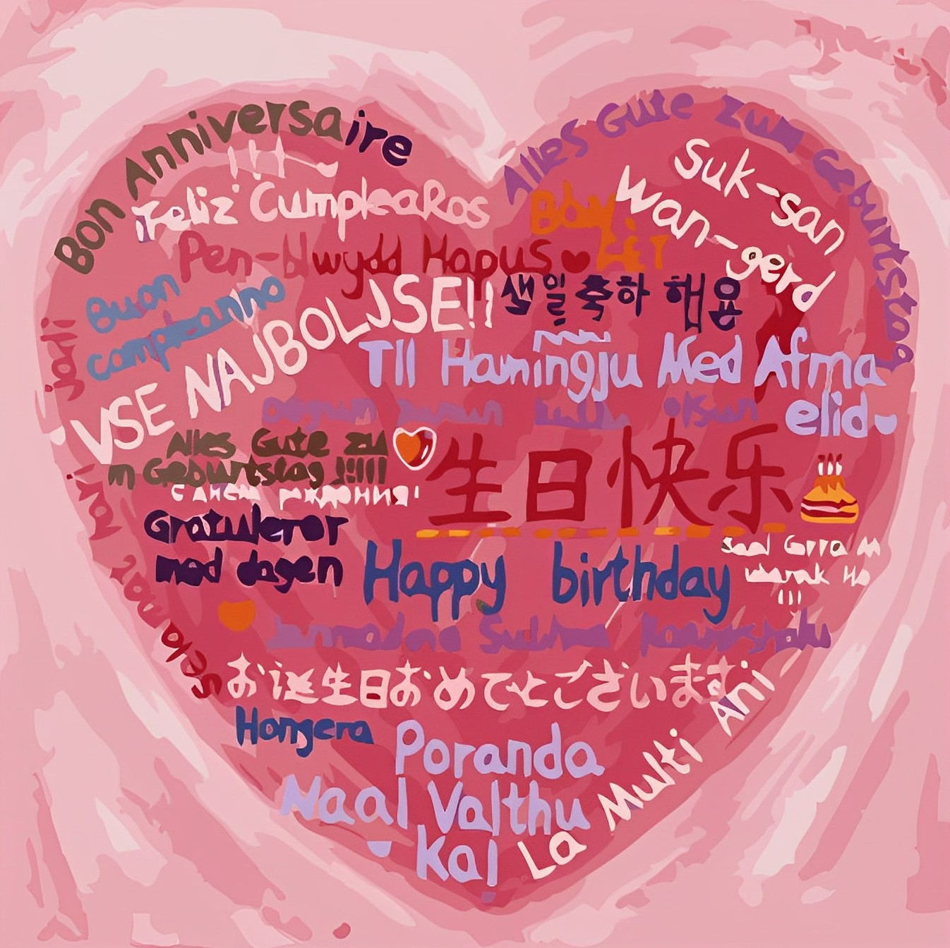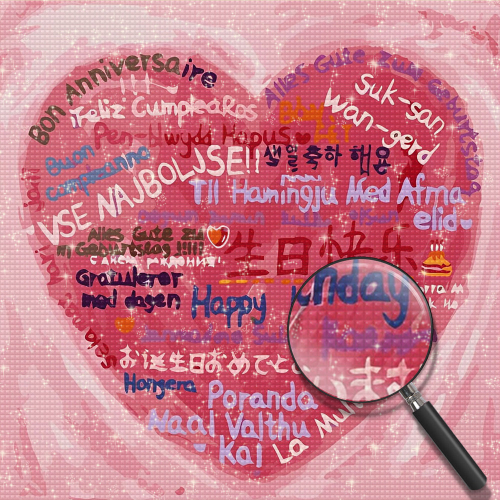 Happy Birthday in the Languages of the World Pink Diamond Painting