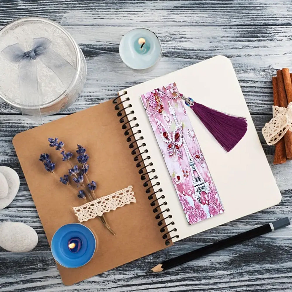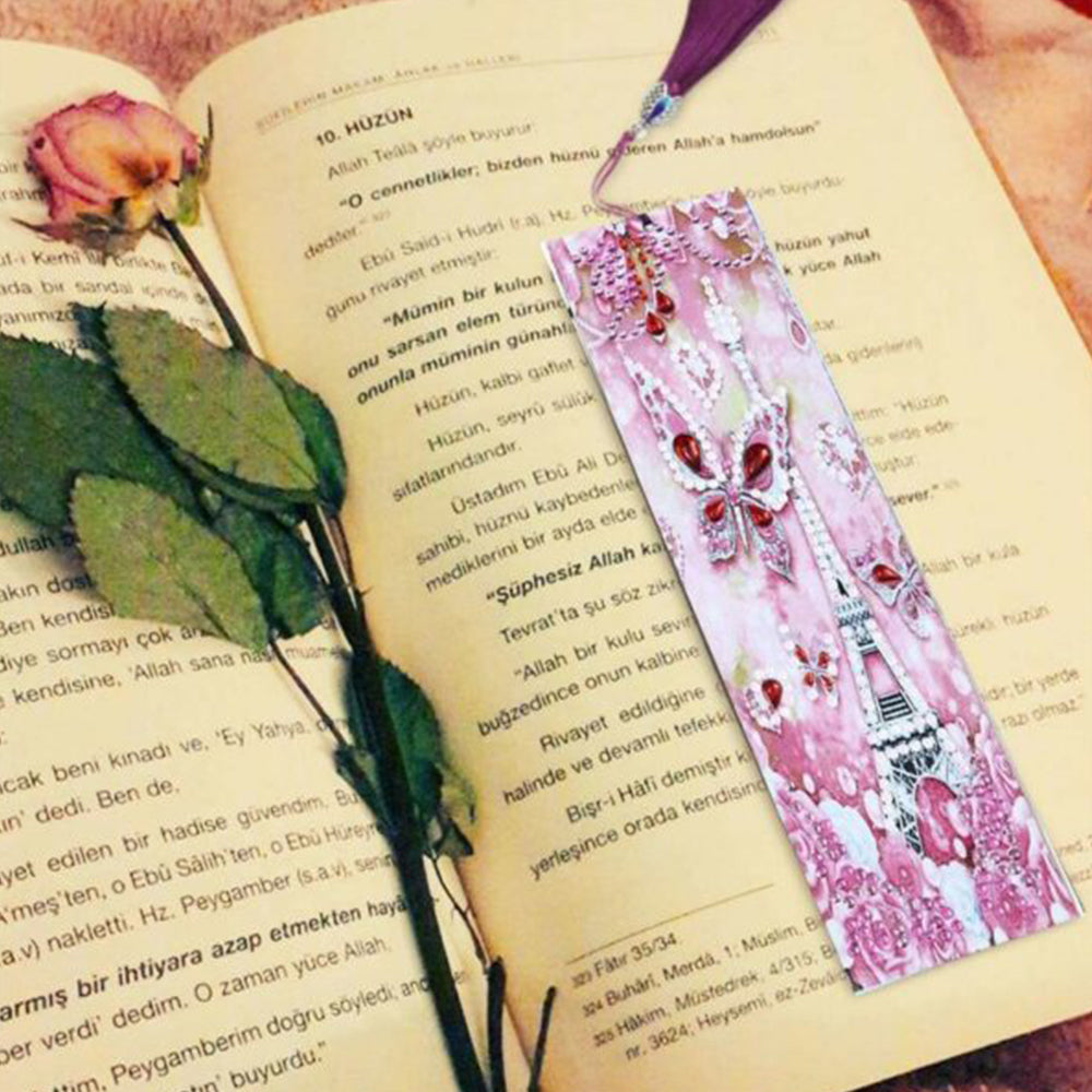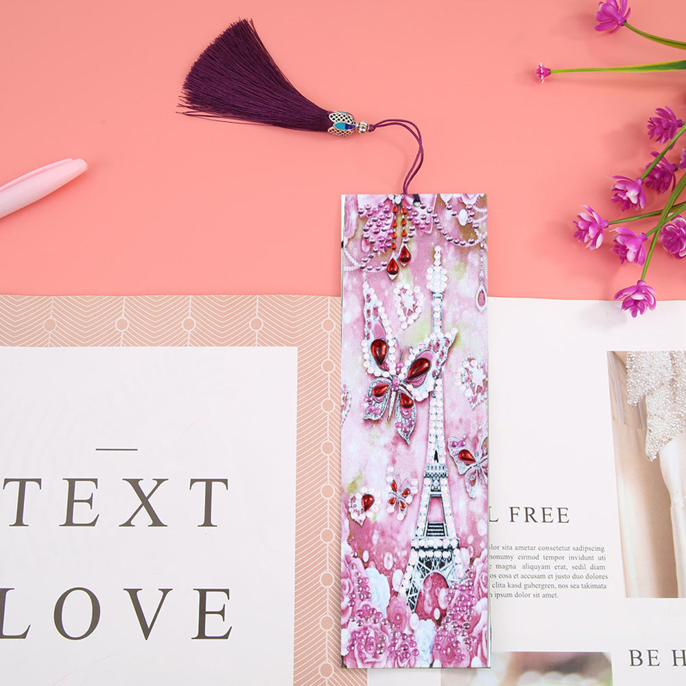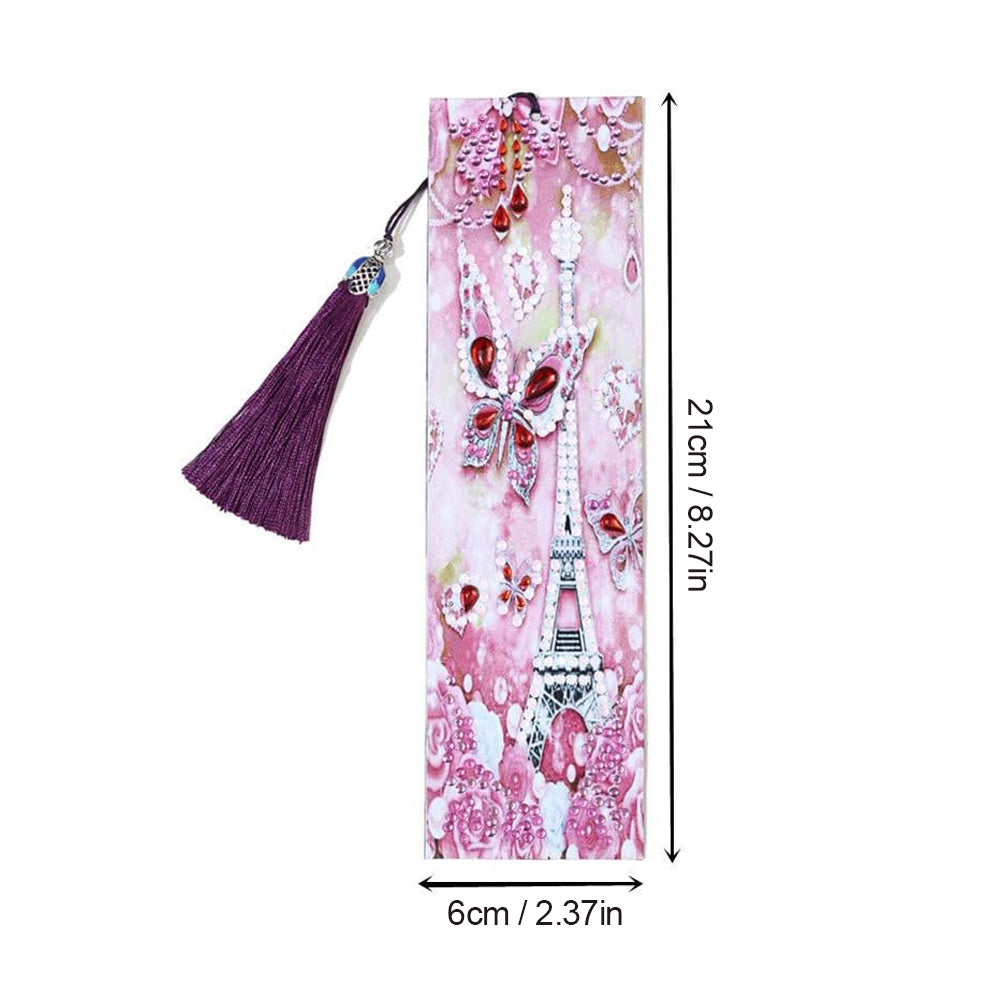 Pink Butterfly and Eiffel Tower Leather Bookmark Diamond Painting Kits