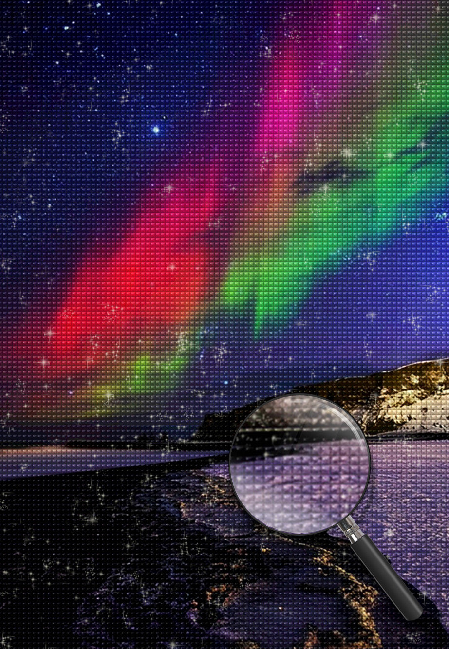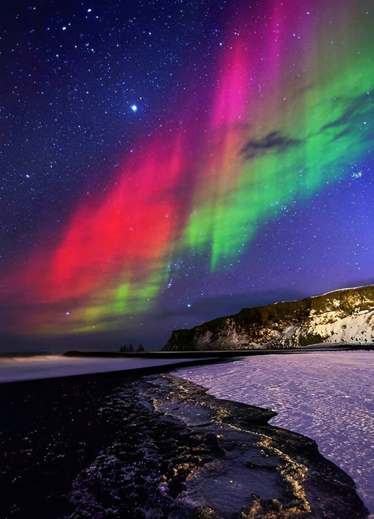 Starry Sky with Green and Red Auroras Diamond Painting